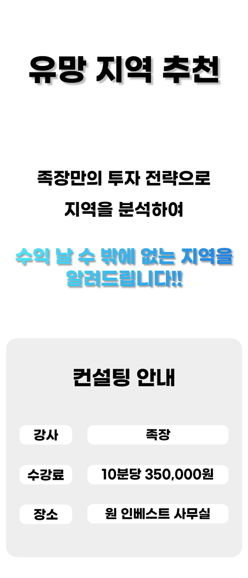 수익 날 수 밖에 없는 곳을 알려드립니다!※ 유망 지역 추천 모집은 마감되었습니다.