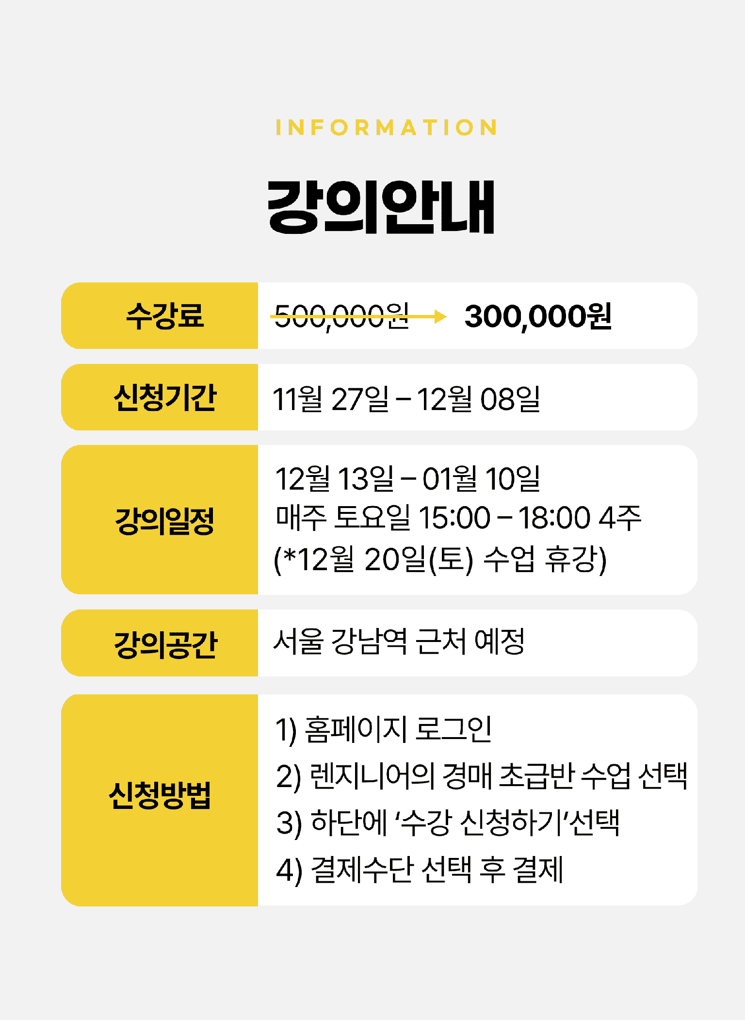 (*12월 20일(토) 수업 휴강)