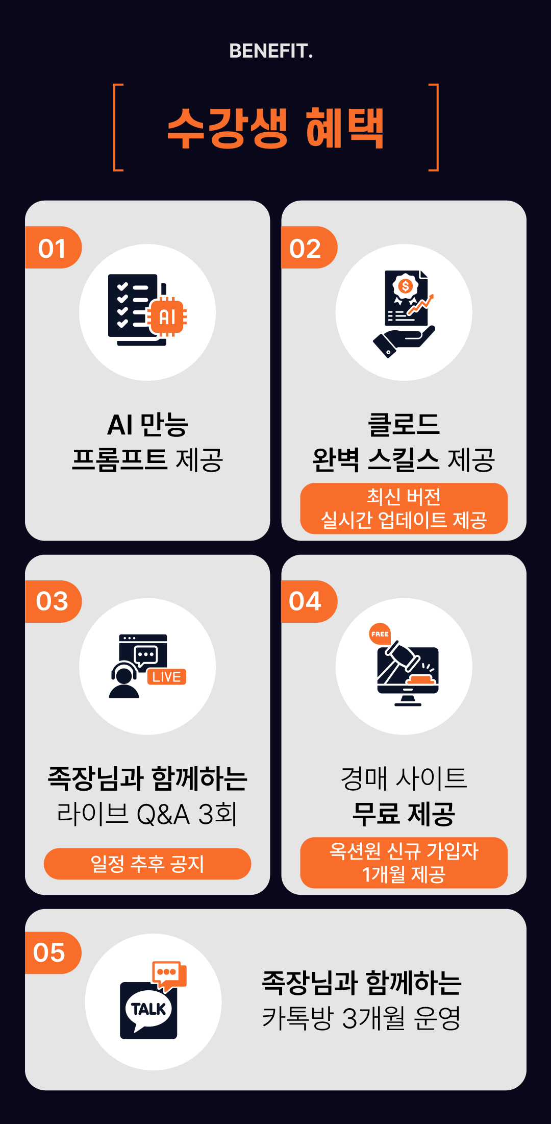 매달 1회 라이브 Q&A 진행 별도 교재 없음 3개월간 카톡방 운영 |